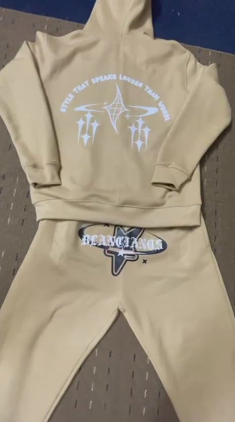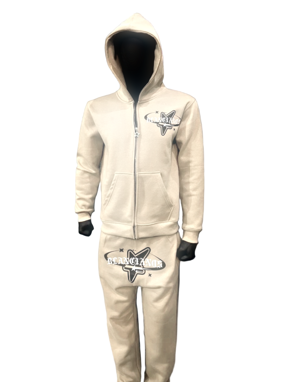 Retro 01’ is built to bring back the early-2000s attitude with a modern edge. The full set features a heavyweight zip-up hoodie and matching sweatpants, finished with bold chrome graphics and the signature Blancianos star print. The fit is relaxed, comfortable, and made to stand out without trying too hard.